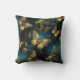 Ein elegantes Kissen mit Schmetterlingsmuster in glänzenden goldenen Farbtönen und leuchtender Blues.