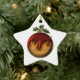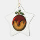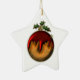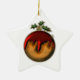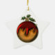 Ein hübscher, sternförmiger Weihnachtsschmuck für Ihren Weihnachtsbaum mit einem Pflaumenpudding aus Rot und Gold, auf dem ein Hauch von Heiliger sitzt.