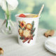 A luxurious, warm still life brimming with Christmas magic: A radiant orange amaryllis reigns over golden Christmas baubles, while a delicately iced star cookie with white royal icing takes center stage. Embraced by fragrant cinnamon sticks, fresh pine branches, and red berries – an image that smells of mulled wine, cookies, and festive anticipation.