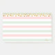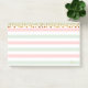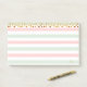Goldene Konfetti auf pastellrosa, weiß und mint gestreiftem Hintergrund Post-It Notes. Fine text kann personalisiert sein.