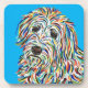 Golden Doodle-Untersetzer, der aus meinem ursprünglichen skurrilen Acrylbild entstand. Die realistischen Augen, die Nase und der Mund spiegeln die wahre Persönlichkeit des Hundes wider, umgeben von skurrilem Fell. Diese einzigartigen Untersetzer wären das perfekte Geschenk für jeden, der Golden Doodle-Hunde liebt.