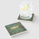 Dieser wunderschöne Untersetzer aus Stein besticht durch eine goldene Libelle auf einem smaragdgrünen, Vintagen Grunge-Hintergrund.