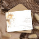 Entspannen Sie Ihre Hochzeitsreise mit unserer Golden Fall Floral Wedding RSVP Card, die Eleganz verkörpert und Ihre Herbstgeschichte perfekt in die Liebe einfügt. Das Design zeichnet sich durch ein atemberaubendes Zusammenspiel reicher, goldener Farbtöne aus, das an die sich im Herbst ändernden Blätter erinnert. Das aufwändige Blumendesign verleiht dem Haus eine Touch von Eleganz und Charme und schafft so ein faszinierendes visuelles Meisterwerk, das perfekt Ihre Hochzeitsästhesie ergänzt.