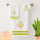 Golden fleur de Lis and three stripes on white. Elegant modern towel set. Image only on one side.