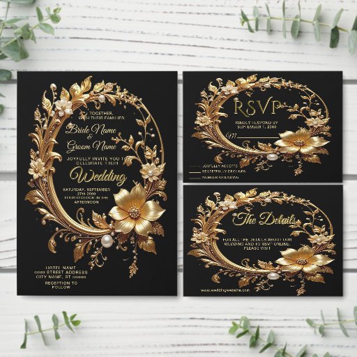Beautiful Golden Floral Ornate Frame RSVP Card