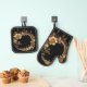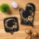 Beautiful Golden Floral Ornate Oven Mitt & Pot Holder Set