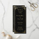 Goldfolie Great Gatsby Art Deco Hochzeitsprogramme Rackkarten mit anpassbarem Text auf schwarzem Hintergrund