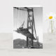 Diese Fotografie, im Jahre 1936 genommen, zeigt Golden gate bridge während des Baus. Die Fahrbahnabschnitte sind über der Bucht, warteten, zu den mächtigen Suspendierungskabeln oben befestigt zu werden freitragend.