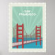Illustration des Goldenen Tors mit Rays and Mountain Background für San Francisco Briefmarke, Label oder Aufkleber Design.