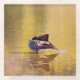 Ein Foto einer kanadischen Gans, die sich in einem flachen Abschnitt eines Teiches herumpfropft. Die perfekte Balance der Gans spiegelt sich wieder im Wasser wider, da die Federspitze das Wasser sanft anzieht. Die umliegende Landschaft spiegelt die Springtime-Farben auf der Wasseroberfläche wider. Gelbe, grüne und braune Flecken verstreuen sich über die Wasseroberfläche des Teiches.