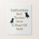 In Gold abgebildet sind die Worte Staffordshire bull Terrier haben ein Herz aus Gold mit zwei Ölgemälden neben den Worten