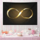 Gold, Schmuck-Unendlichkeitssymbol mit goldenen Sternen auf schwarzem Hintergrund. Design mit Goldstar.