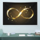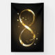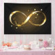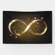 Gold, Schmuck-Unendlichkeitssymbol mit goldenen Sternen auf schwarzem Hintergrund. Design mit Goldstar.
