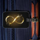 Gold, Schmuck-Unendlichkeitssymbol mit goldenen Sternen auf schwarzem Hintergrund. Design mit Goldstar.