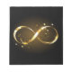 Gold, Schmuck-Unendlichkeitssymbol mit goldenen Sternen auf schwarzem Hintergrund. Design mit Goldstar.