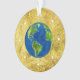 Représentant la création, ce globe géographique coloré sur un arrière - plan doré est entouré d'un design géométrique de flocon de neige.