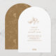 Ein Single voller Blätter in goldener Kontur ist der Mittelpunkt für diese wunderschöne, bogenförmige Hochzeitseinladung. Auf der Rückseite befindet sich ein passendes Muster von Blätter in der gewünschten Hintergrundfarbe. Der typische Schriftart-Stil in allen Kleinbuchstaben und die moderne Gestaltung machen das Ganze zu einer eindrucksvollen Einladung. Die zahlreichen Gestaltungsmöglichkeiten in diesem Set, vom goldenen Pinselstrich bis zum mit Goldstaub ausgekleideten Herbstblatt-Arrangement, ermöglichen es Ihnen, Ihre Favoriten zu mischen und dabei gleichzeitig ein zusammenhängendes Gesamtbild zu bewahren. Ideal für Outdoor, Garten und Hochzeiten im Herbst. Suchen Sie ID655, um das vollständige Set anzuzeigen.