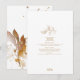Ein Single voller Blätter in goldener Kontur ist der Brennpunkt für die Vorderseite dieses Hochzeitsmenüs, während die Rückseite eine Herbstblattanordnung enthält, die liberal mit Goldstaub gefüllt ist. Der Schriftart in Kleinbuchstaben und das moderne Layout machen dies zu einer auffälligen Ergänzung Ihres Hochzeitstisches. Die zahlreichen Gestaltungsmöglichkeiten in diesem Set, von goldenen Pinselstrichstreifen bis hin zu mit Goldstaub ausgekleideten Herbstblattarrangements, ermöglichen es Ihnen, Ihre Favoriten zu mischen und dabei gleichzeitig ein zusammenhängendes Gesamtbild zu bewahren. Ideal für Outdoor, Garten und Hochzeiten im Herbst. Suchen Sie ID655, um das vollständige Set anzuzeigen.