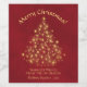 Golden Lights Christmas Tree on Red Holiday Weinetikett