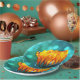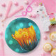 Golden Marigold auf Aquamarin Bokeh Pappteller
