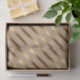 Hier haben wir ein schönes Papiertaschentuch mit antiken goldenen diagonalen Streifen auf einem bräunlichen Hintergrund. Dieses Papier ist in verschiedenen Größen erhältlich und passt zu anderen Verpackungspapieren, Papiertüchern, Geschenktaschen und einer Grußkarte. Dies ist sicher eine perfekte Ergänzung zu Ihren Geschenken in dieser Ferienzeit.