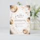 A luminous celestial wedding design glowing in soft white and metallic gold. This invitation features ornate swirling filigree, crescent moons, scattered stars, and shimmering celestial accents that create an ethereal, dream-filled atmosphere. The refined Art Nouveau frame adds a luxurious vintage touch, making it ideal for couples who want a romantic, moonlit, and enchanting celebration aesthetic.