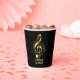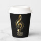 Moderner goldglänzender Kleber mit Noten auf schwarzem Hintergrund. Fuuny Text