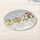 Golden New Year 2026 with Snowflake and Santa Hat Runder Pappuntersetzer