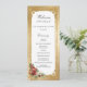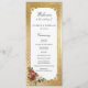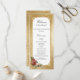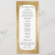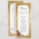Erleben Sie eine unvergessliche Winterhochzeit mit diesem eleganten Urlaubsprogramm-Design, das ein üppiges Gewirr von Weihnachtsliedern, Poinsettia, Heilig- und Kiefernholz, weißes Etikett mit einem verzierten goldenen Rahmen und einem opulenten Imitat aus metallischem Goldgradienten mit Damaskusmuster-Hintergrund bietet.