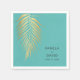 Diese hübsche Hochzeitsappenserviette hat einen modernen minimalistischen Stil mit tropischer Drehung. Es verfügt über einen Single golden Imitat Folie Palm frond auf einem karibisch-blauen Hintergrund. Für Braut- und Bräutigam-Namen und Hochzeitstermin ist eine Textvorlage mit einem einfachen, modernen Gesicht enthalten. Diese Serviette ist eine wunderbare Wahl für Hochzeiten am Strand, Hochzeiten in Urlaubsort oder Hochzeiten mit einem Design-Thema an der Küste.