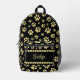 Golden Paw Prints on Black with Custom Name Bedruckter Rucksack