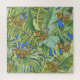Goldene Pfauenpfaue Blätter auf einem zerulenblauen Hintergrund für eine indische Hochzeitskollektion Muster