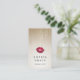 Elegantes, vertikales Visitenkartendesign für Makeup-Künstler oder Beauty-Profis mit klassischer schwarzer Schrift auf goldfarbenem Hintergrund, verziert mit Litzen von Imitaten mit vergoldeten Linienbeleuchtung. Personalisieren Sie sich mit zwei Textzeilen auf der Vorderseite unter einer lebendigen Pink Lip Print Kiss Illustration und fügen Sie Ihre Kontaktdaten auf der Rückseite hinzu.