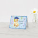 Senden Sie Dank für Ihr Abschlussgeschenk mit diesem Entwurf, der einen niedlichen, glücklichen Absolvent des goldenen Retrievers kennzeichnet, der einen Mortarboard unter einer Aufregung von Confetti trägt.