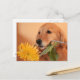 Voici une fleur pour vous ! Cette carte postale présente la photo d'un mignon chien de repérage doré tenant une fleur jaune dans la bouche. La carte est entièrement personnalisable. Ajoutez du texte à l'avant et à l'arrière, si vous le souhaitez. Vous pouvez même déplacer ou supprimer l'espace réservé de l'estampille et la ligne de séparation verticale.