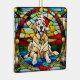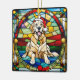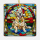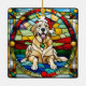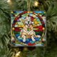 A Christmas ornament with a stained glass Cocker Spaniel wearing a Santa hat.