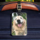 Mit diesem einzigartigen Anhänger können Sie Ihr Gepäck stilvoll ausleihen! Design zeigt ein Foto eines lächelnden Golden Retriever Hundes draußen in einem Blumengarten. Personalisieren Sie mit einem individuelle Name oder einer Wortgruppe.
