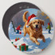 Golden Retriever im Schnee mit Weihnachtshut Button