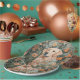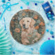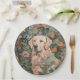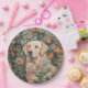 Elegantes Vintages Blumendesign mit goldenem Retriever in der Mitte, inspiriert durch den Stil von William Morris.