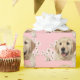 Golden Retriever in den Gänsen auf rosa Geschenkpapier