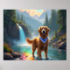 Golden Retriever in Fantasy Rainbow River Poster