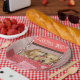 In diesen Tellern finden Sie goldene Retrievers, die in einem Kissingstand küssen. Diese Teller wären perfekt für ein Valentinstag-Party.