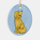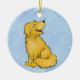 Niedliches Golden Retriever, das Schneeflocken auf einem Weihnachtsschmuck fängt. Handgezeichnet, originelles Kunstwerk.