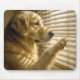 Golden Retriever Peeking Through Sunlit Blinds Mousepad