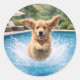 Golden Retriever Puppy Pool Plunge Runder Aufkleber