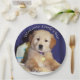 Diese tapezieren Teller kennzeichnen einen Welpen des goldenen Retrievers in einem hohen Stuhl. Die Mitteilung liest, "begrüßen Sie kleines". Diese würden für eine Babydusche oder neues ein Baby-Party perfekt sein.