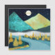 Eine wunderschöne Landschaft mit einzigartigen Texturen, die eine Fluss- und Berglandschaft mit aufsteigendem Mond und Sternenhimmel in den Farben Blau, Gold, dunkelgrün und Gelb zeigen.