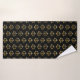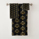Handtuch Set mit einem sich wiederholenden Bild der goldenen Waage auf einem schwarzen Hintergrund. Einfach und elegant.