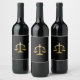 Flaschenetiketten mit einem Bild der goldenen Waage auf einem schwarzen Hintergrund. Einfach und elegant.