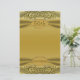Herrliche und ausgeklügelte goldfarbene Scrollarbeit auf goldenem Hintergrund und mit einem Imitat-Satin-Finish-Band überragt mit einem goldenen Juwel wie Monogramm-Button mit den Worten "50th Anniversary". Pünktlich zum goldenen Hochzeitstag!